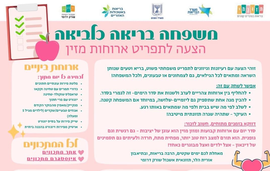 משפחות יקרות, אנחנו מבינים את האתגר העצום בהזנת המשפחה בימים אלו, בהם הילדים נמצאים בבית 24/7. לכן, אנחנו באשכול רשויות שורק דרומי חשבנו עליכם ויצרנו הצעה לתפריט משפחתי טעים ובריא. יש כאן רעיונות לארוחות מזינות וגם קישור למתכונים. >> https://www.flipsnack.com/B677DFD6AED/–198g9k7wb1 בתקווה לימים שקטים יותר