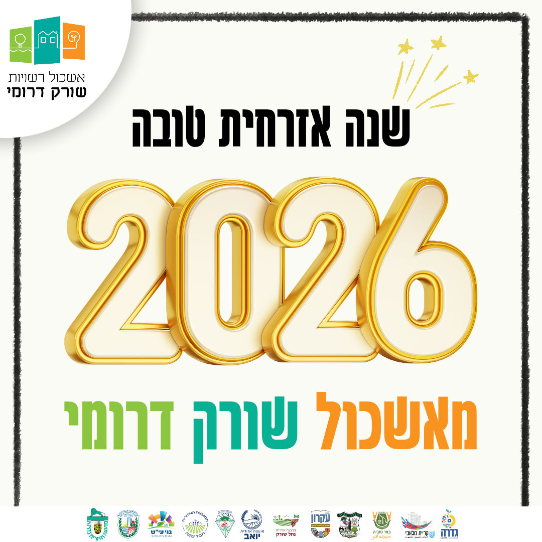 שלום 2026! שנה אזרחית טובה אשכול שורק דרומי מאחלים שנה מוצלחת של שותפות ועשייה