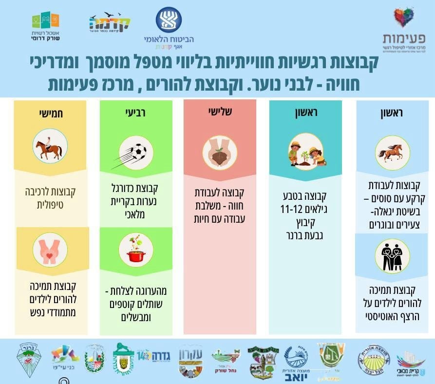 מרכז "פעימות" לטיפול רגשי לנוער מזמין אתכם להצטרף למגוון הקבוצות שנפתחות בתקופה הקרובה. במרכזנו, הממוקם בכפר הנוער קדמה, וברחבי רשויות אשכול שורק דרומי אנו מציעים קבוצות רגשיות חוויתיות מקצועיות ומגוונות המיועדות לבני ובנות נוער בגילאי 12–18 ולהורים ומשפחות המעוניינים בליווי. מה אנו מציעים? * מענים רגשיים קבוצתיים ופרטניים בראיה הוליסטית. * חוות סוסים ומשק חי, […]