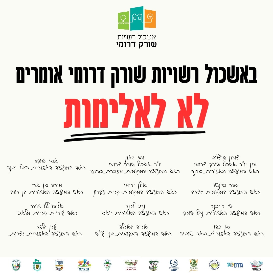 הודעה משותפת לראשי רשויות אשכול שורק דרומי: "לאחרונה חווינו אירוע אלימות חמור שהתרחש כנגד משרת ציבור באחת מהרשויות החברות באשכול שורק דרומי. בעקבות המקרה וביחס לתופעה המדאיגה, אנו מבקשים להשמיע קול צלול וברור: אנו, ראשי הרשויות החברות באשכול שורק דרומי, מגנים בחריפות ובשאט נפש כל גילוי של אלימות – מילולית או פיזית. נבחרי ועובדי הציבור […]